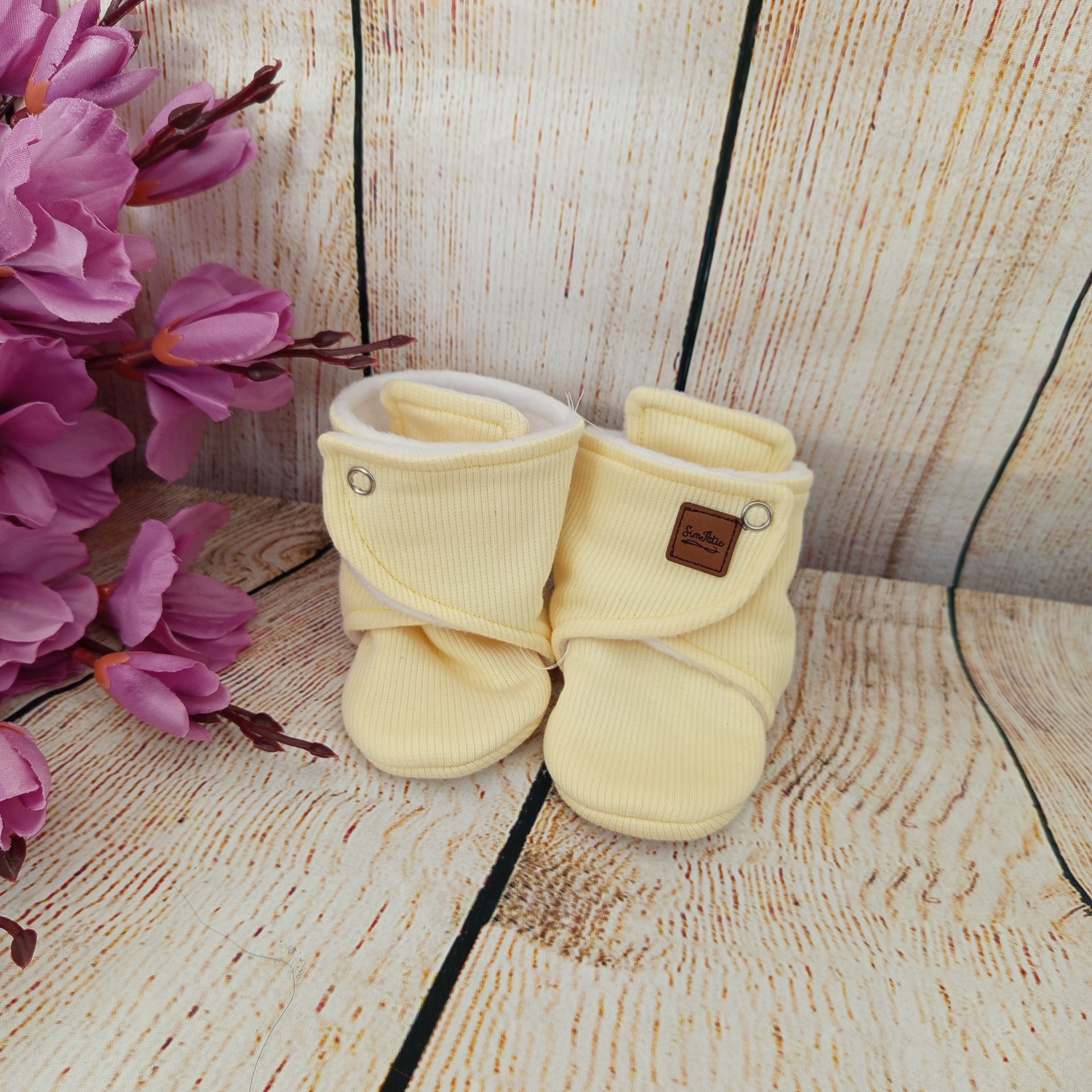 Měkoučké dětské capáčky ušité ze žebrovaného úpletu a zateplené hřejivým fleecem. Ideální na chladnější dny – krásně drží na nožičce a udrží je v teple a pohodlí. Ručně šité s láskou a péčí o každý detail.