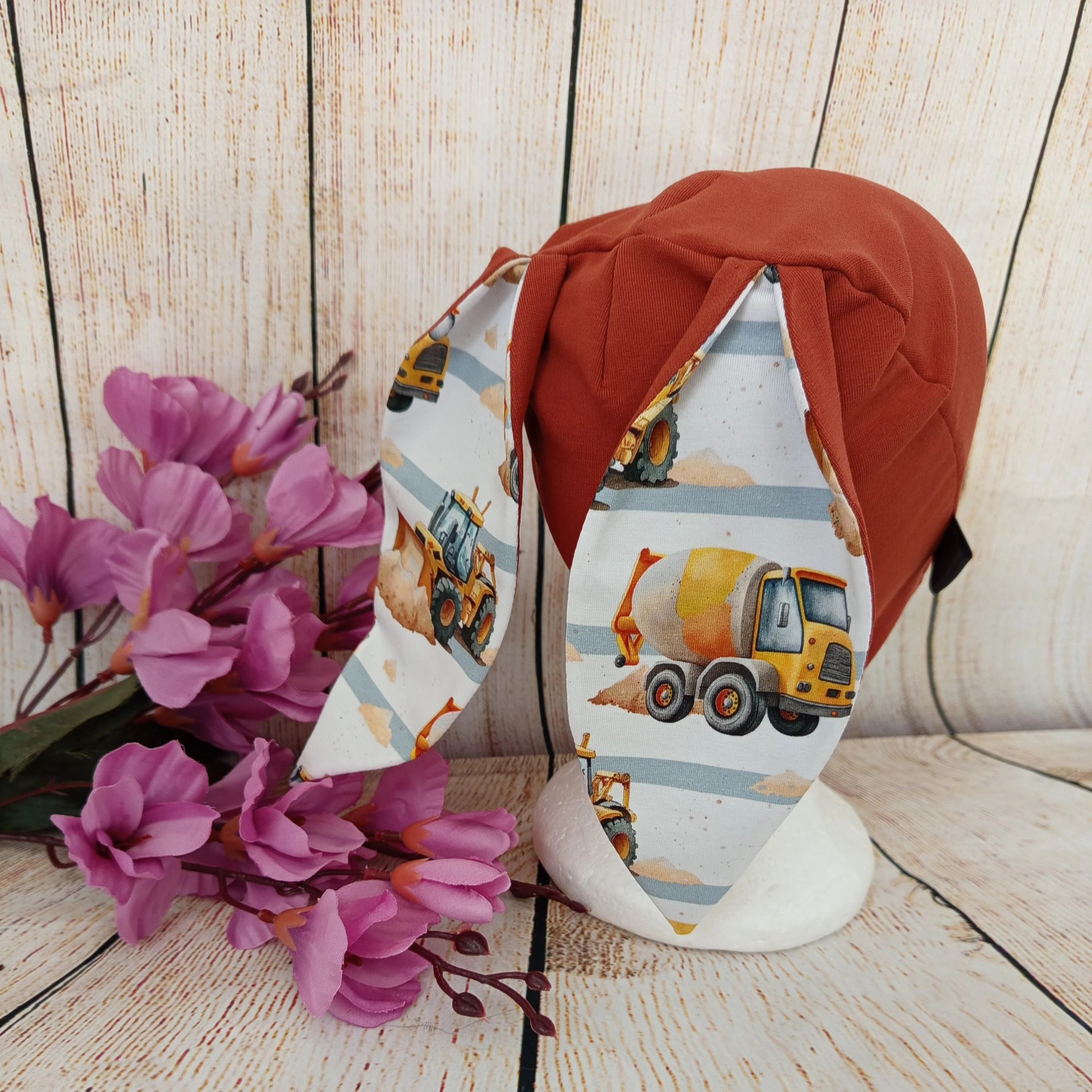Roztomilá čepice s oušky z měkké teplákoviny. Pohodlná, hravá a ideální pro malé i velké ušáky. Krásně drží na hlavičce, takže už žádná odkrytá ouška.